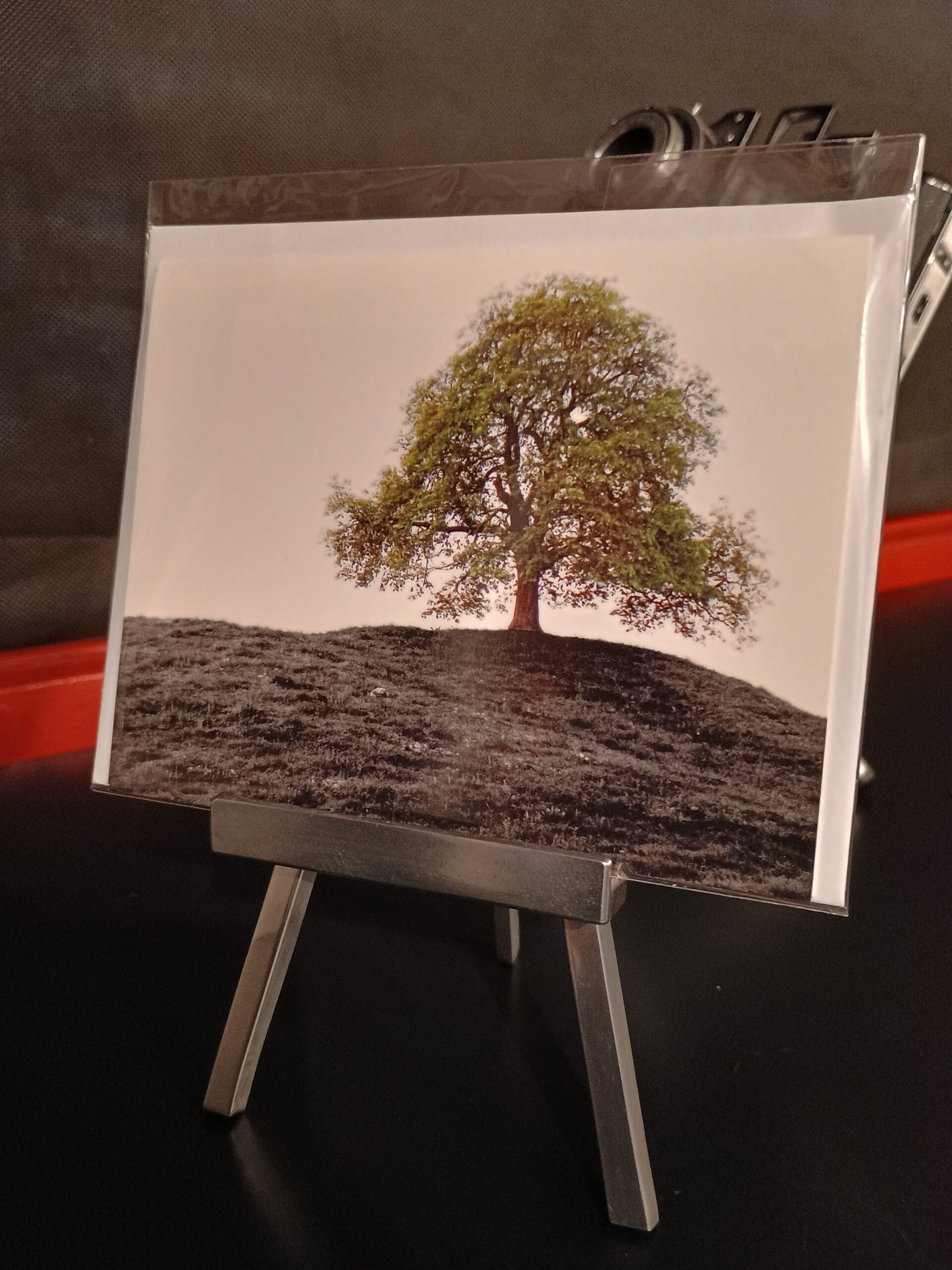 Gefaltete Schreibkarte mit Sujet: Colorierter Baum oberhalb Wiedlisbach am Jurasüdhang.
